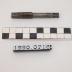 Description : Tige d'acier comprenant quatre parties : - une extrémité pointue ; - puis, dans le sens de la longueur, trois rangée de stries horizontales, chacune étant séparée de l'autre par un évidement ; - ensuite, toujours dans le sens de la longueur, un tronçon où le métal est lisse (section circulaire) ; - enfin, l'autre extrémité (sup), de section carrée, l'embase étant percée.