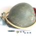 Casque léger de l'armée française, avec tour de tête en cuir et toile sur lequel a été monté une lampe acétylène comprenant un réflecteur, un péseau et un briquet à ressort permettant de produire l'étincelle enflammant l'acétylène. Dans le prolongement du péseau se trouve un tuyau de gaz en caoutchouc "Normagaz - 1981" utilisé à l'origine pour les cuisinières à gaz. Un sangle pour le tour de cou a été fixé par la suite. Ce casque a été completé avec un système d'éclairage électrique, dont il ne reste que la partie inférieure du boitier destiné à recevoir une pile rectangulaire de 4,5 volts.