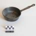 Description : Récipient sur plan circulaire (D à la base 10,3 cm) , à bords bas évasés ( HT 5,5 cm D au sommet 11,5 cm), comportant un bec-verseur, et un manche plat quasi rectangulaire ( L 13 cm Lg 2,2 cm) , dont l'extrémité arrondie est percée d'un trou permettant la suspension.