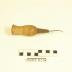 Description : Manche profilé à gorge se terminant par une virole en acier (D sup : 1,5 cm D inf : 0,9 cm L : 3,3 cm) sur laquelle est montée une alène à trépointe