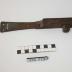 Description : Petit outil composé d'un manche, fer plat affectant la forme d'un losange allongé, sur la plus petite face duquel sont articulés deux parallélépipèdes rectangle juxtaposés par leur grande face. Un boulon et une vis permettent d'augmenter ou de diminuer l'écartement des deux masses parallélépipèdiques.