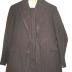 Description : Lainage marron avec des rayures noires et claires. LA VESTE H (69 cm) doublée marron comporte 2 poches de chaque côté du devant et une poche gousset sur la gauche; 3 poches intérieures. Elle se ferme à l'aide de 2 boutons et boutonnières. On observe une boutonnière sur le revers gauche. Les manches ( 53 cm) doublées avec un tissu blanc rayé bleu ont 4 boutons marrons décoratif au niveau du poignet. LE PANTALON (H 98 cm) doublé avec un tissu rayé gris et blanc, un tissu beige pour les poches. Il comporte 2 poches de côté sur l'avant et une poche à l'arrière. 7 brides permettent de passer une ceinture indépendante. A l'arrière 2 pattes avec un système de crochet permettent de modifier la longueur de la taille en fonction des besoins. 7 boutons marron , un crochet et 5 boutonnières ferment le pantalon sur l'avant. LE GILET Tissu noir dans le dos et doublure blanche rayée bleue. 4 poches extérieures et une grande poche à l'intérieur. Une petite ceinture dans le dos permet de modifier la longueur de la taille en fonction des besoins. 5 boutons et boutonnières.