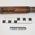Description : Pièce de bois tourné, de section elliptique (L bois 11,1 cm, Lg 2,7 cm, ép : 2,2 cm), prolongée par une bague en laiton (Lg : 2,9 cm, D : 2 cm) sur plan circulaire.