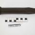 Description : Tige de métal de section octogonale pour la partie sup. Tête ébréchée Lg/ep : 3,2 cm ; corps : Lg/ép 2,8 cm. Partie inf de section rectangulaire (maxi 2,8 x 2,6 cm, min 2,4 x 0,1 cm). Extrémité inf. tranchante.